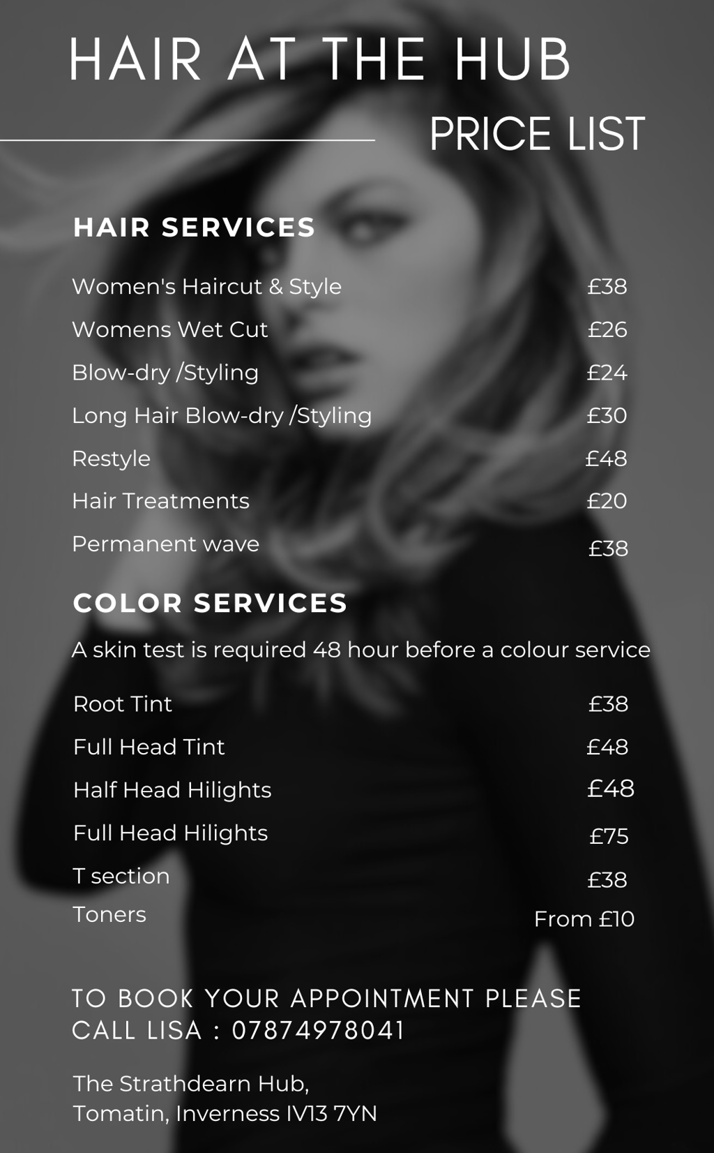 Please note: A skin allergy test is required at least 48 hours before any hair colour service. This is essential for all new colour clients and for anyone who has not had a colour service within the last six months.